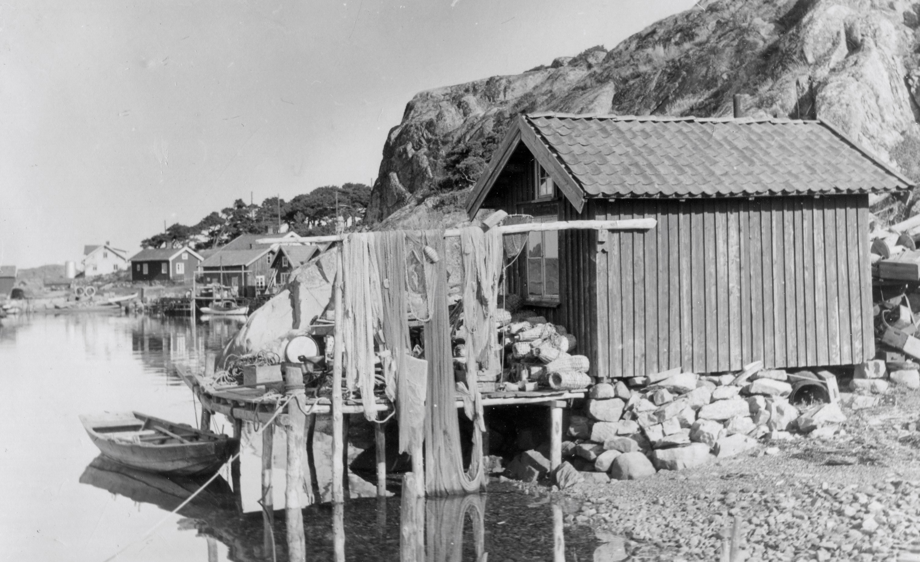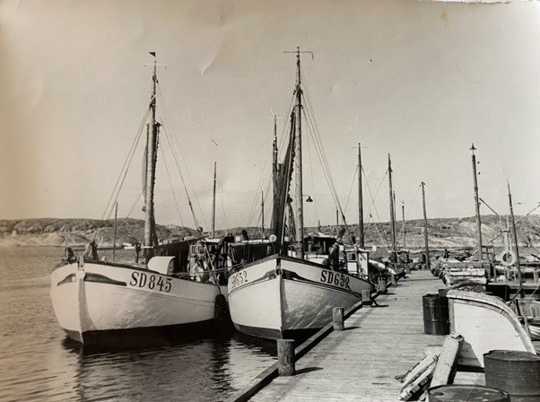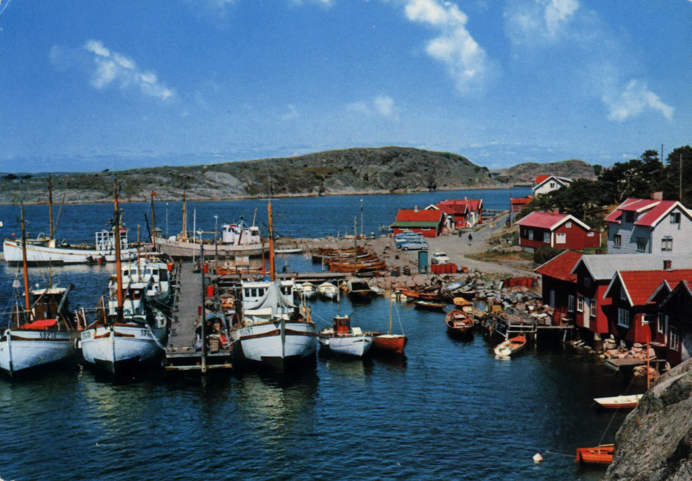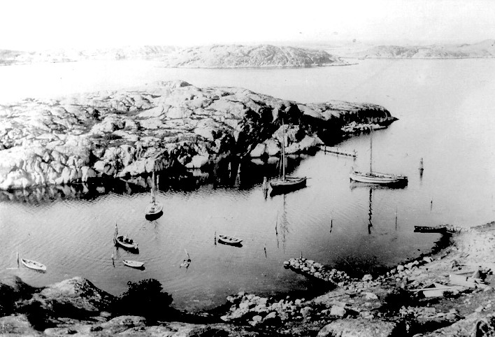 På fotografier över hamnen från tidigt 1900-talet finns det bara några små stenbryggor och några pålar ute i sundet vid vilka de större jakterna var förtöjda. Norr om hamnen fanns då som nu en rad med bodar eller magasiner. Dessa användes under senare delen av 1800-talet som salterimagasiner vid det stora sillfisket som hade sin kulmen på 1890-talet. Magasinerna brann ned några år in på 1900-talet och nya mindre bodar har därefter byggds upp. Återkommer till detta senare. Behovet för en bättre hamn ökade på 1930-talet och 1935 stod de tre stenpirarna och en T-brygga färdig. Bygget kostade 103 000 kronor och gjordes av ALU- arbetare. Stödarbete finansierat av Svenska staten under den dåvarande ekonomiska krisen. 1975 utvidgades hamnen, T-bryggan fick ge vika för en betongkaj och den södra öppningen byggdes igen så att hamneholmen fick landförbindelse och nya kajer med plats för gästhamn. 1995 lades en ny flytbrygga ut norr om hamnen med plats för 18 fritidsbåtar och några gästplatser. Under vintern 1999-2000 drogs kommunalt avlopp till hamnen, fiskarna fick en egen toalett och en serviceanläggning gjordes på hamnholmen i anslutning till det då nybyggda Hamnmagasinet.